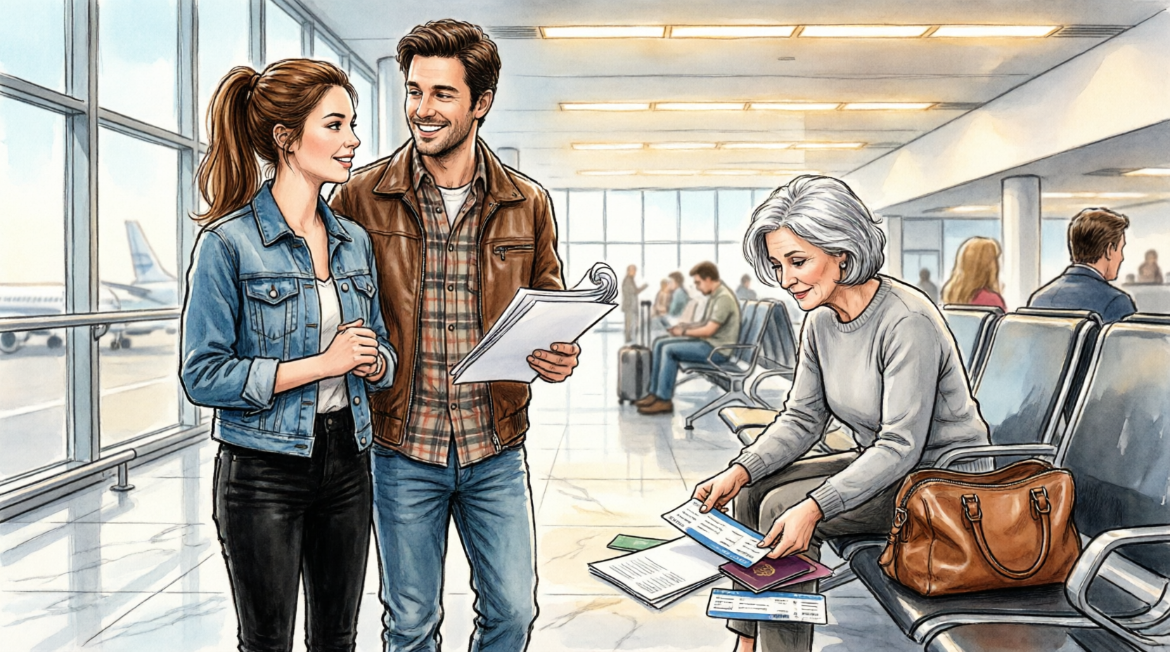 The terminal buzzed around us—rolling suitcases, boarding calls, overlapping conversations—but in that moment, everything blurred into background noise. People glanced over, then quickly looked away, pretending not to notice, though I could feel their attention.