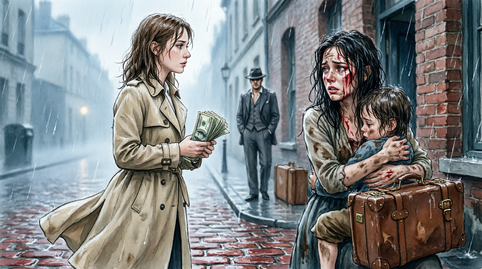— «Prendi questo.» Esitò. — «Non lo voglio.» La dignità era tutto ciò che le restava. Ma la donna insistette, infilando la busta tra le sue mani. — «Fallo per loro», disse, lanciando un’occhiata ai bambini.
