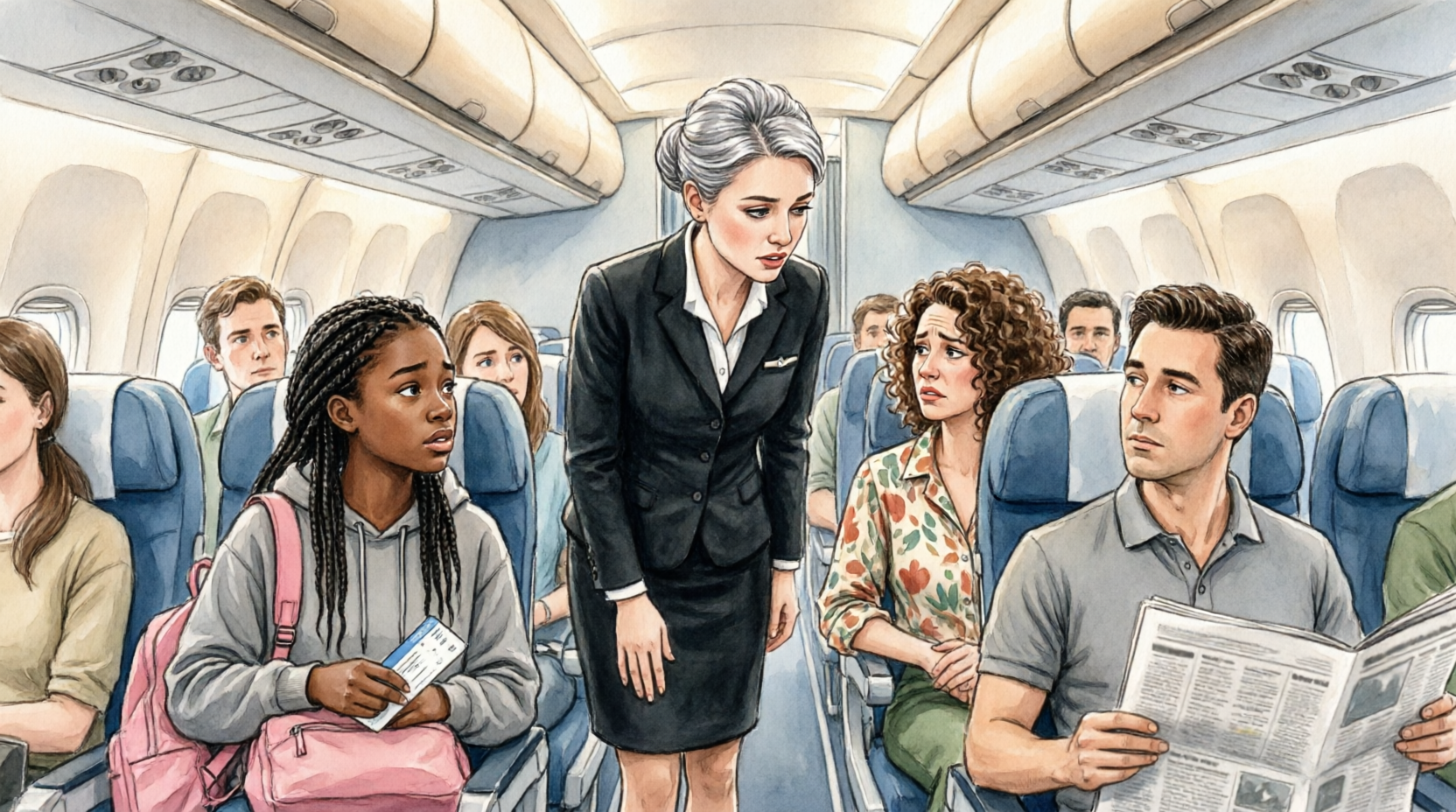 The man in 3A didn’t move. Middle-aged, irritated, and dismissive, he acted as if she were the problem.