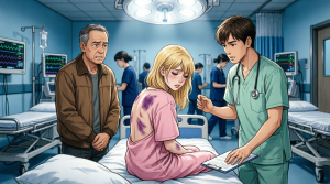“She came into the ER forty minutes ago. Severe trauma to her back. Possible assault.” He paused. “You need to see this yourself.”