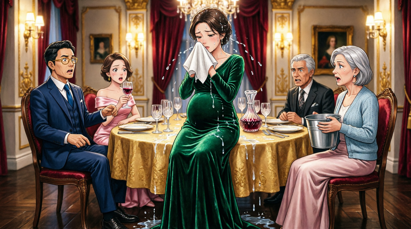 The shock of the icy water hit instantly. It poured over my head and shoulders, soaking my dress and splashing across the table. For a moment the room went completely silent.