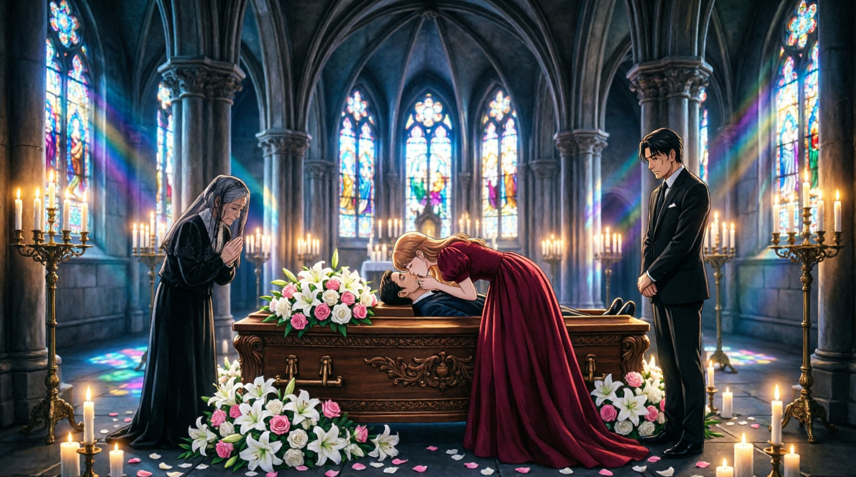 Il portait un costume sur mesure, les cheveux parfaitement coiffés. À son bras se tenait une jeune femme dans une robe rouge éclatante, arborant un sourire bien trop confiant pour quelqu’un se tenant devant un cercueil.