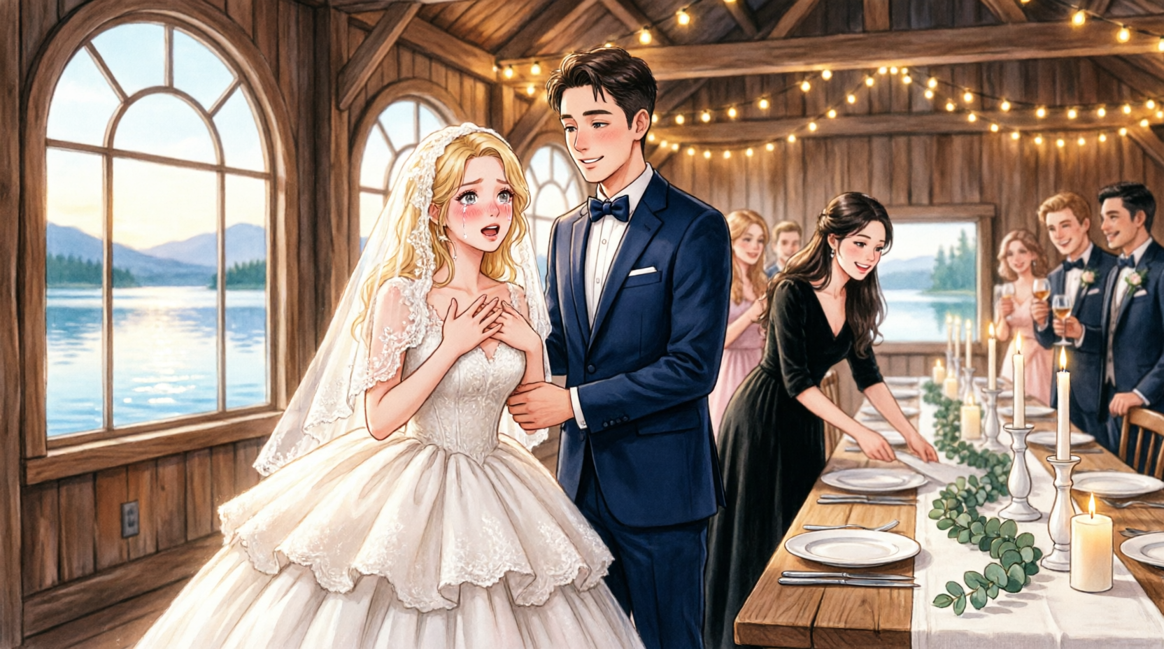 I pushed away from the wall and went outside, needing air. The night breeze off the lake was cool and carried the faint scent of pine from the surrounding woods. The sounds of laughter from inside drifted out behind me, but none of it felt real anymore. I walked toward the dock, stopping at the railing where tiny lights glowed along the path. My hands trembled slightly as I rested them on the wood.