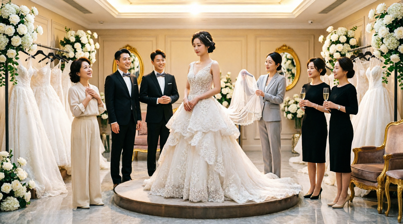 He was standing just beyond the fitting area, one hand in his pocket, the other curled uselessly around the stem of a champagne glass. Tall, handsome, expensively dressed, with the same polished ease that had first drawn me to him at a charity gala eighteen months earlier. He had one of those faces that photographed beautifully and apologized well. In another life, maybe that would have been enough.