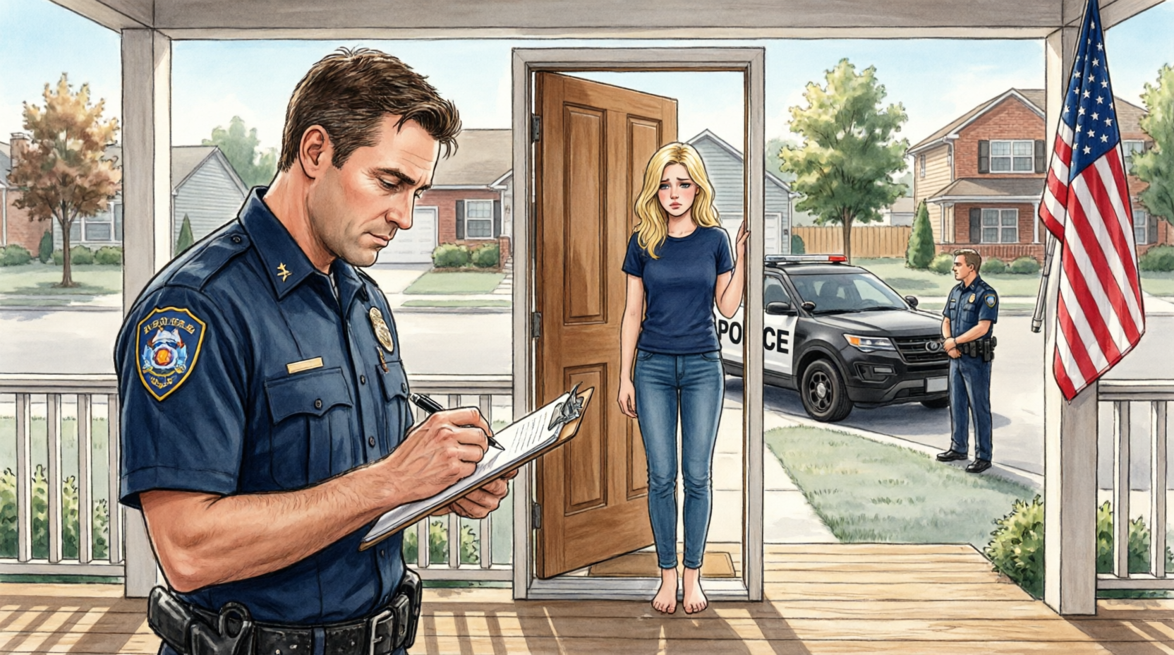 Ho infilato la prima vestaglia che ho trovato e sono scesa. Dallo spioncino ho visto due agenti di polizia sul portico: uno più anziano, uno più giovane, entrambi con quell’espressione stanca di chi ha già assorbito troppe stronzate altrui e non è ancora ora di colazione.